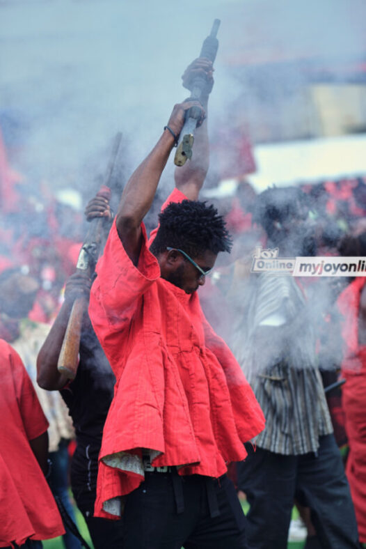 The atmosphere was filled with drumming, singing, and dancing, punctuated by the firing of muskets.
