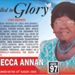 BURIAL AND MEMORIAL SERVICE:  Friday 24th October, 2025 at Methodist Church, Accra Wesley Cathedral at 9:00 am