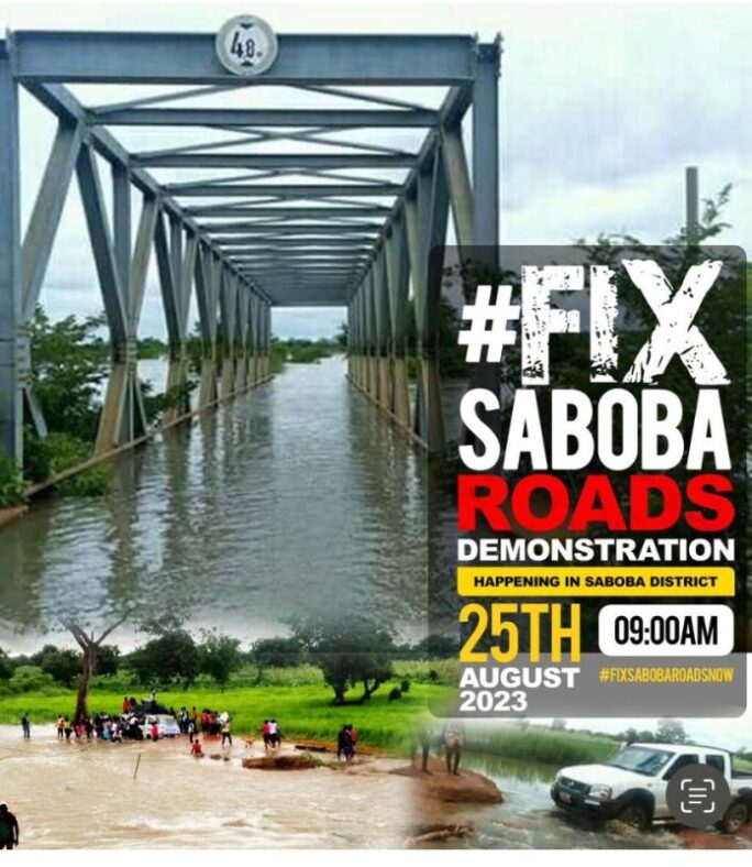 The demonstration, dubbed: “Fix Saboba Roads Demonstration”, is scheduled for Friday, August 25.