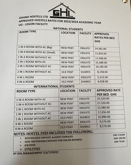 In July 2023, Ghana Hostels Limited, popularly known as Pent Hall on the University of Ghana campus, increased their fees sharply.