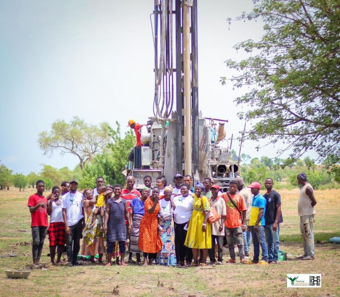 The Engineer of SS drilling company Ltd, contracted by Temis Foundation for the drilling of the borehole, Mr Saban Osman indicated that, the first phase of the drilling has been done saying, in some few days to come the building of the borehole concrete platform and fixing of the pump would be completed for handing over to the community. It is costing Temis Foundation Gh¢30,000.00 to drill the hand pump borehole for the community according to Mr Saban Osman the Engineer in charge.