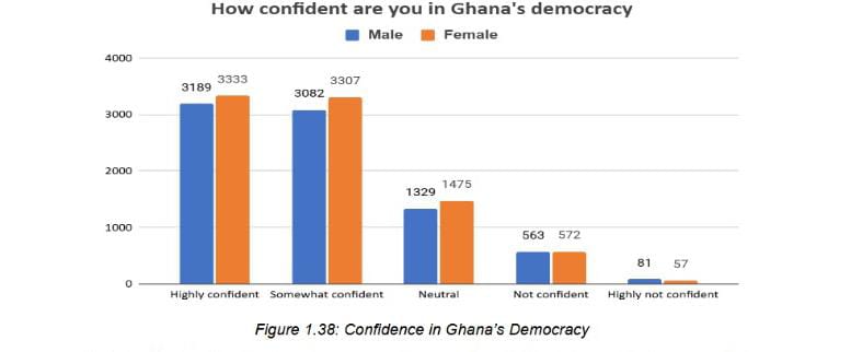 Meanwhile, a minority, 6.7 percent, stated they were not confident in Ghana’s democratic system, and a further 0.8 percent said they were highly not confident.