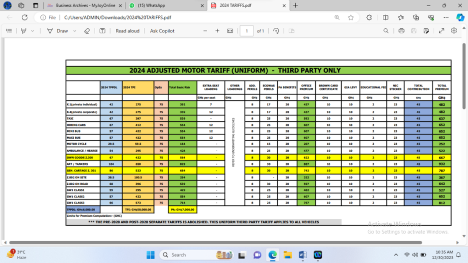 The Ghana Insurers Association also advised its members there will no longer be accepting the pre and post 2020 tariffs.