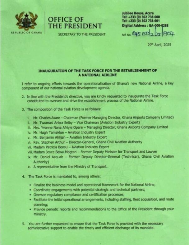 The Task Force, which is chaired by a former Managing Director of the Ghana Airport Company Limited, Charles Asare is also expected to coordinate engagements with potential strategic and technical partners to ensure Ghana remains competitive in the aviation industry.