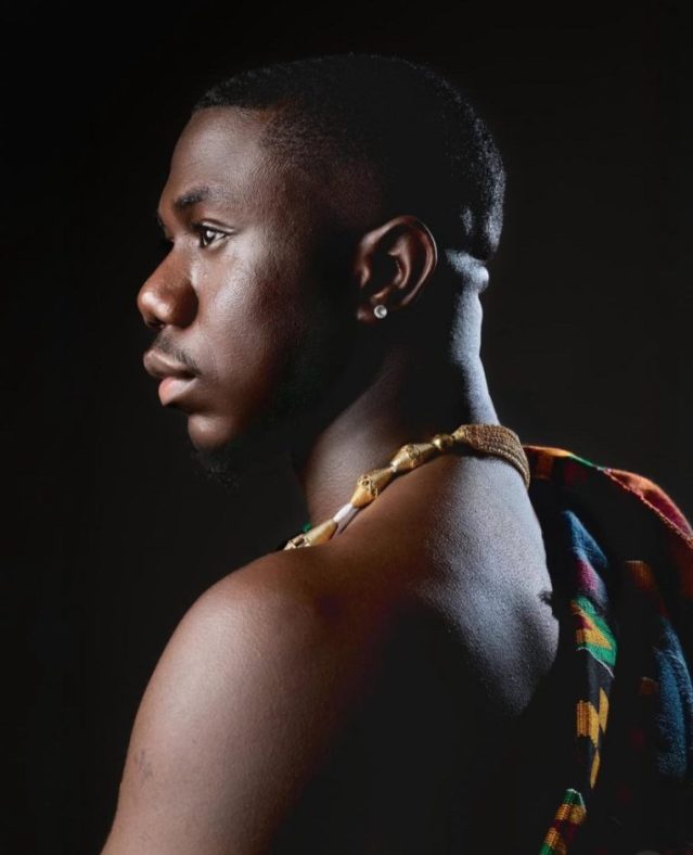 Comedian McJoel Cudjoe (4everjoeyy) wearing a traditional Ghanaian Kente cloth