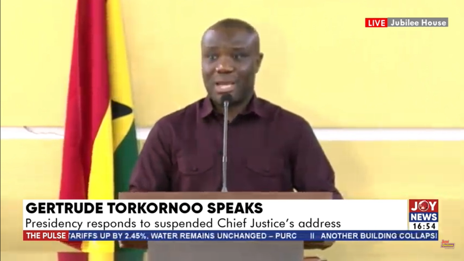 The rebuttal came during an emergency press conference at Jubilee House on Wednesday, June 25, where the government’s spokesperson, Felix Kwakye Ofosu, directly responded to Justice Torkornoo’s public address.