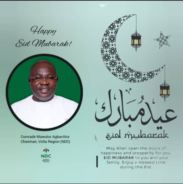 Volta regional Chairman of the National Democratic Congress (NDC), Mawutor Agbavitor has extended felicitations to the Muslim community in Ghana on the celebration of the Eid al-Adha festival of sacrifice.