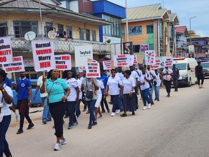 Hundreds of Christians took to the major streets of the Sekondi – Takoradi Metropolis to register a strong stand against homesexuality and any other sexual behaviours, which are in contravention with their faith and Ghanaian norms.