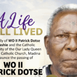 The family of WO II Patrick Dotse Gomashie and the Catholic Community of the Our Lady Queen of Peace Catholic Church, Madina, announce the passing of;